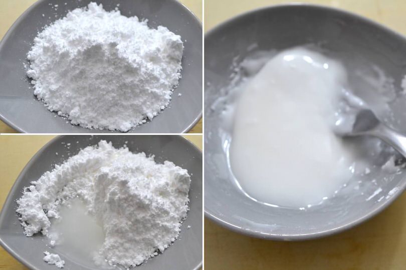 Aggiungetel' acqua tiepida e mescolate fino ad ottenere una glassa densa ed omogenea.