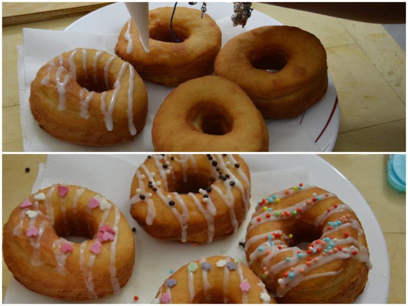 Decorate i cronuts con la glassa all'acqua e ricoprite poi con zuccherini colorati.