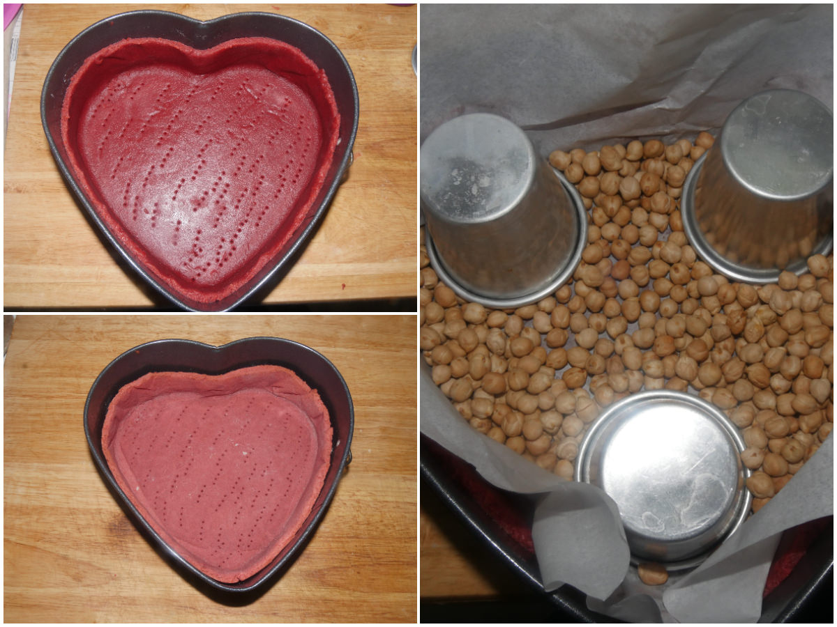 Bucherellate il fondo, quindi coprite con un foglio di carta forno, riempite di legumi e procedete con la cottura in bianco, in forno ventilato preriscaldato a 180°C: cuocete per 30 minuti in totale, ma negli ultimi 5 minuti togliete carta forno e legumi.