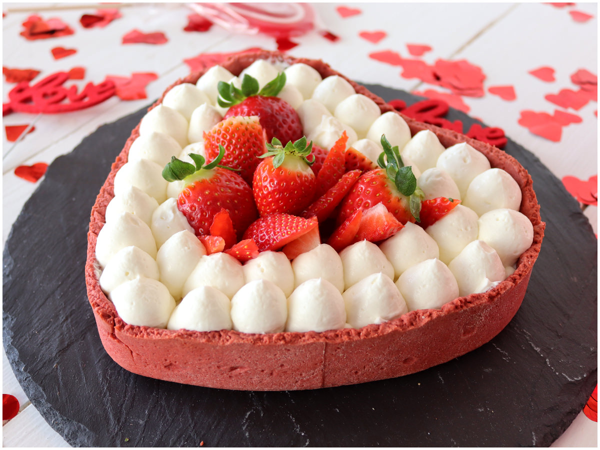 La crostata a cuore è la mia idea di una crostata red velvet. Con una frolla rossa, un ripieno al formaggio e una bella guarnizione di fragole mi sembrava l'ideale per San Valentino, quindi ho deciso di farla anche a forma di cuore, e secondo me è uscita una vera e propria meraviglia ;) Naturalmente potete modificare la ricetta, ad esempio usando una crema al cioccolato o una mousse alla nutella: sarà meno red velvet, ma sempre buonissima ;) Se quindi avete ancora qualche dubbio su cosa preparare per festeggiare domani in grande stile, questa potrebbe essere la ricetta che fa per voi!