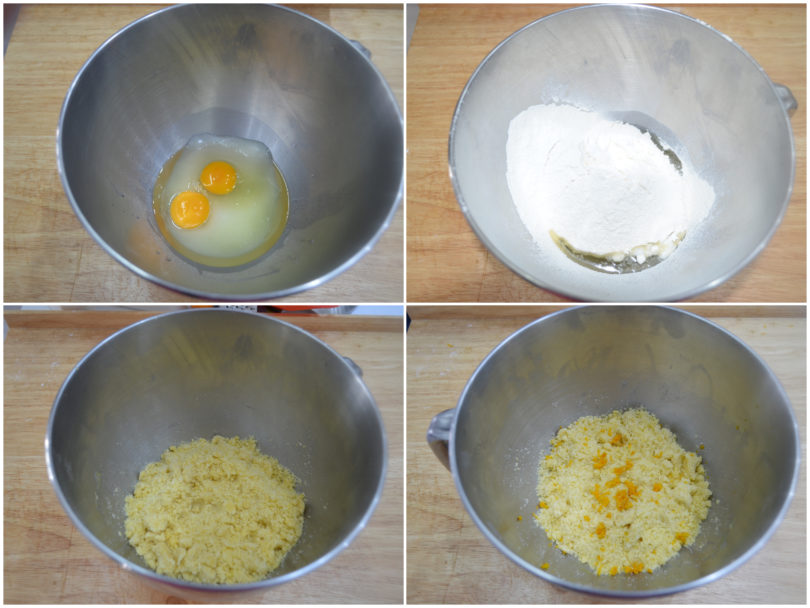 Aggiungete anche la farina con il lievito e la buccia di limone e iniziate a lavorare.
