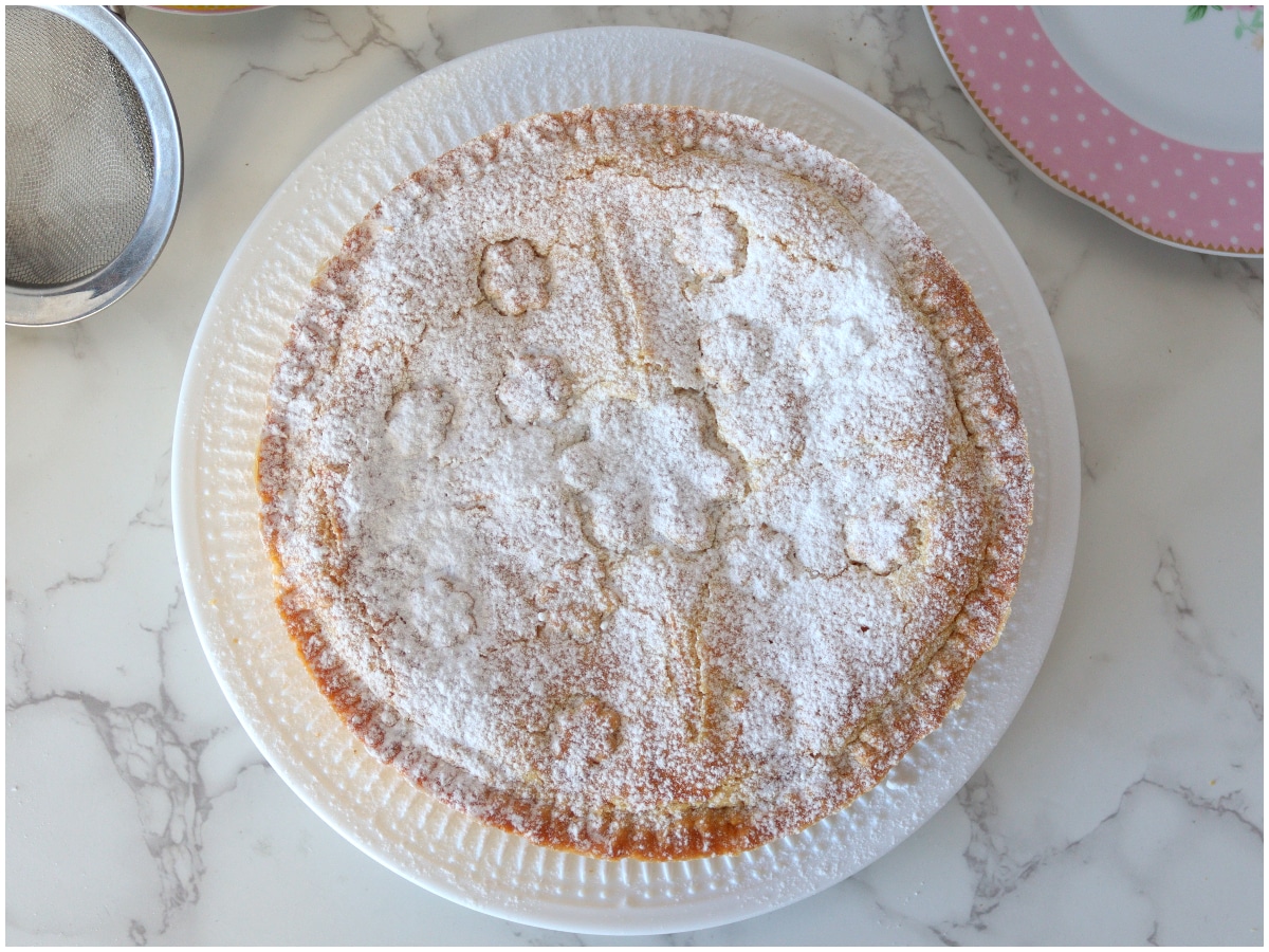 La crostata al mascarpone è pronta: lasciatela raffreddare completamente, quindi decorate con zucchero a velo e servite.