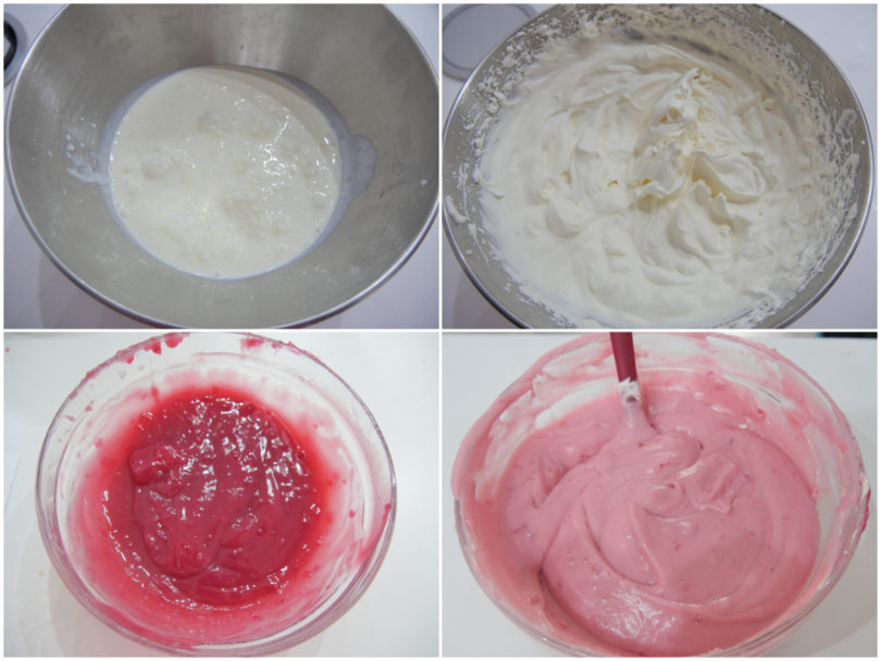 Quando sia la base della crostata che la crema saranno completamente fredde iniziate ad assemblare: innanzitutto montate la panna, ben fredda di frigo, e unitela alla crema di melograno, mescolando delicatamente con movimenti dal basso verso l'alto.