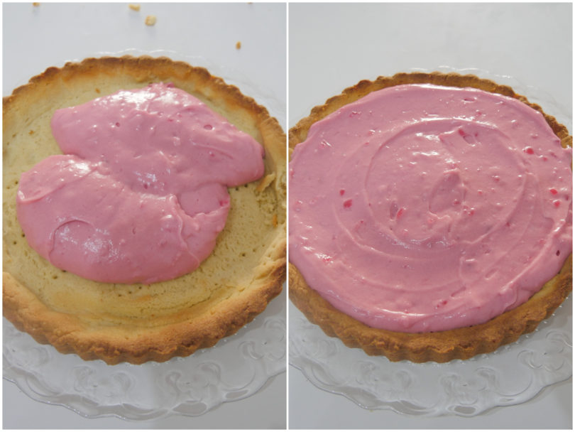 A questo punto versate la crema sulla frolla e livellate bene la superficie.