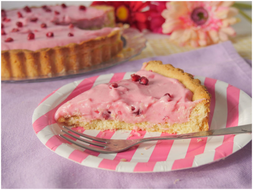 La crostata al melograno è la prima ricetta che ho preparato con la mia pasta frolla alle mandorle. Questa frolla delicatamente aromatizzata si sposa a meraviglia con la crema al melograno che ho elaborato, e la crema stessa è così buona che vi suggerisco di provarla anche in altri contesti, come la farcitura di una torta o anche semplicemente come dolce al cucchiaio ;)