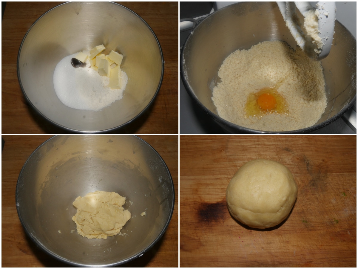 Preparate la frolla: mettete gli ingredienti in una ciotola e impastate rapidamente, quindi avvolgete con pellicola trasparente e lasciate in frigo per almeno 30 minuti.