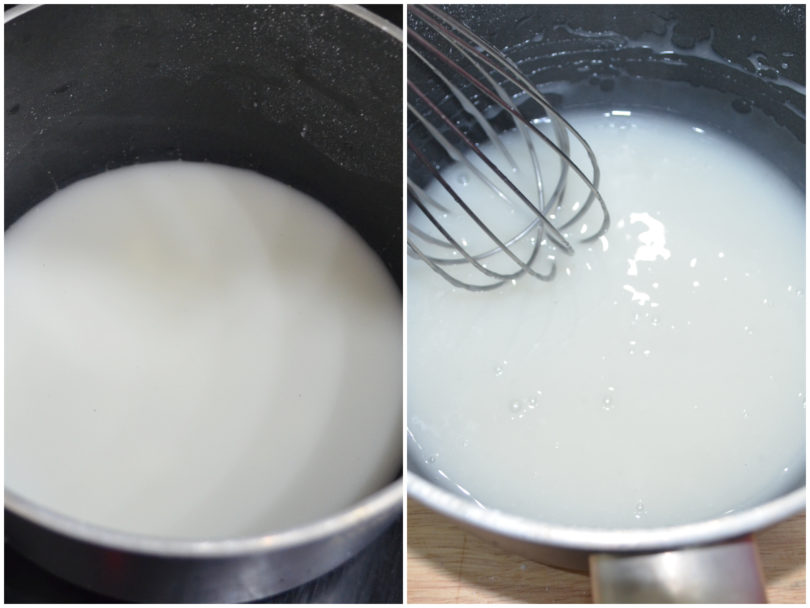 Togliete dal fuoco, aggiungete la colla di pesce dopo averla strizzata delicatamente e fatela sciogliere, quindi fate intiepidire.