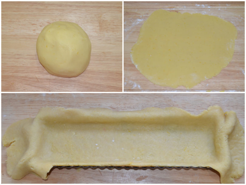 Riprendete la frolla e stendetela in una sfoglia di 3-4 mm di spessore, poi federateci lo stampo imburrato e infarinato.