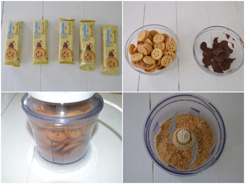 Mettete la crema da parte e frullate i frollini con un mixer.