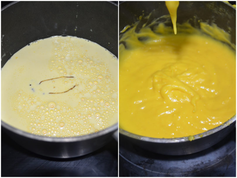 Innanzitutto preparate la crema: incidete la stecca di vaniglia nel senso della lunghezza, quindi mettetela in un pentolino con il latte e fate sobbollire per 5 minuti a fiamma bassa.