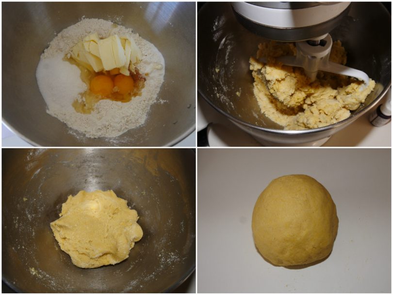 Innanzitutto preparate la frolla: versate tutti gli ingredienti in una ciotola e lavorate velocemente, giusto il tempo di fino ad ottenere un impasto omogeneo.