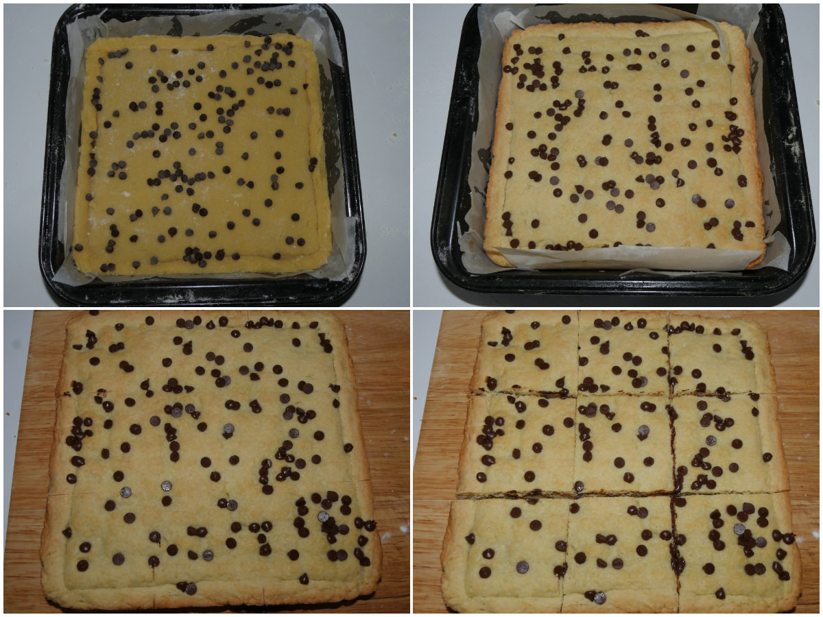 Ricoprite la superficie con le gocce di cioccolato, quindi infornate in forno ventilato preriscaldato a 180°C e cuocete per circa 20 minuti o fino a doratura.