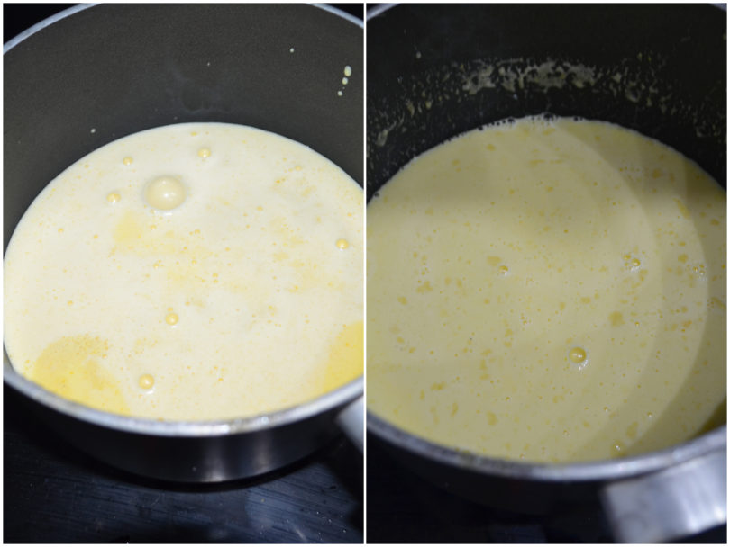 Mettete sul fuoco e cuocete a fuoco basso finché la crema non inizia ad addensarsi.