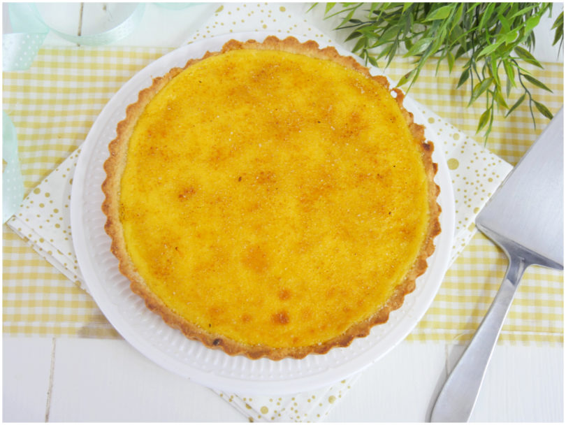 La crostata crème brûlée è pronta, non vi resta che servirla subito.