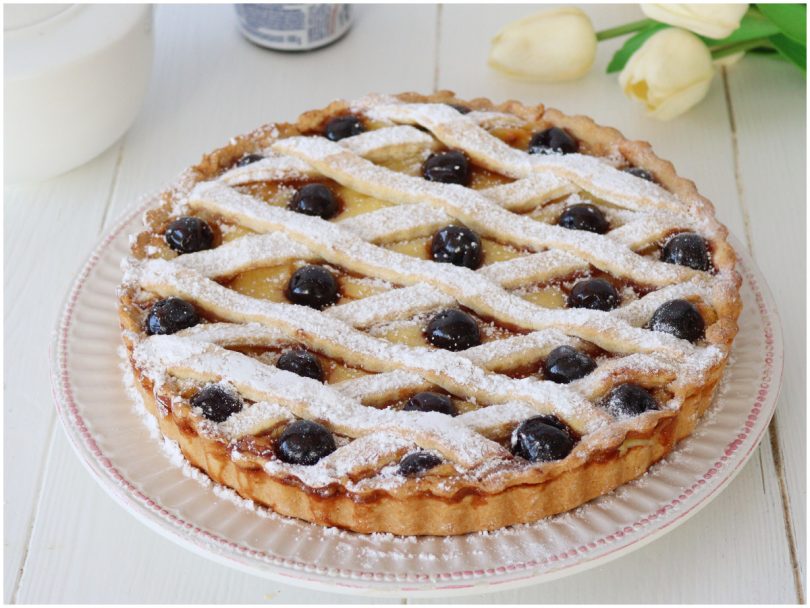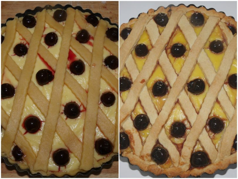 Tagliate delle strisce dalla pasta rimasta ed intrecciatele sulla crema.