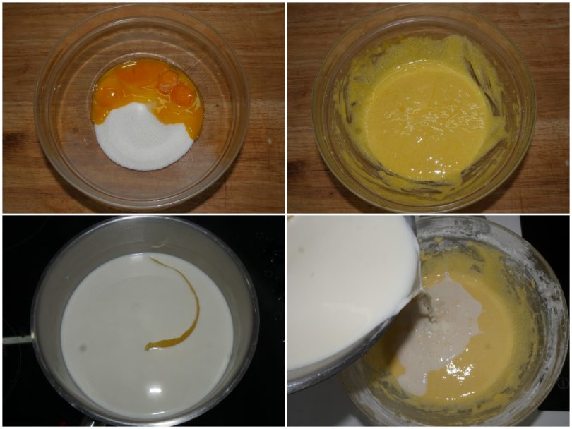 Aggiungete la maizena e mescolate fino ad avere un composto liscio e senza grumi.Versate quindi sopra il latte caldo in cui avrete fatto sobbollire una buccia di limone ( meglio se d'Amalfi) sempre mescolando.