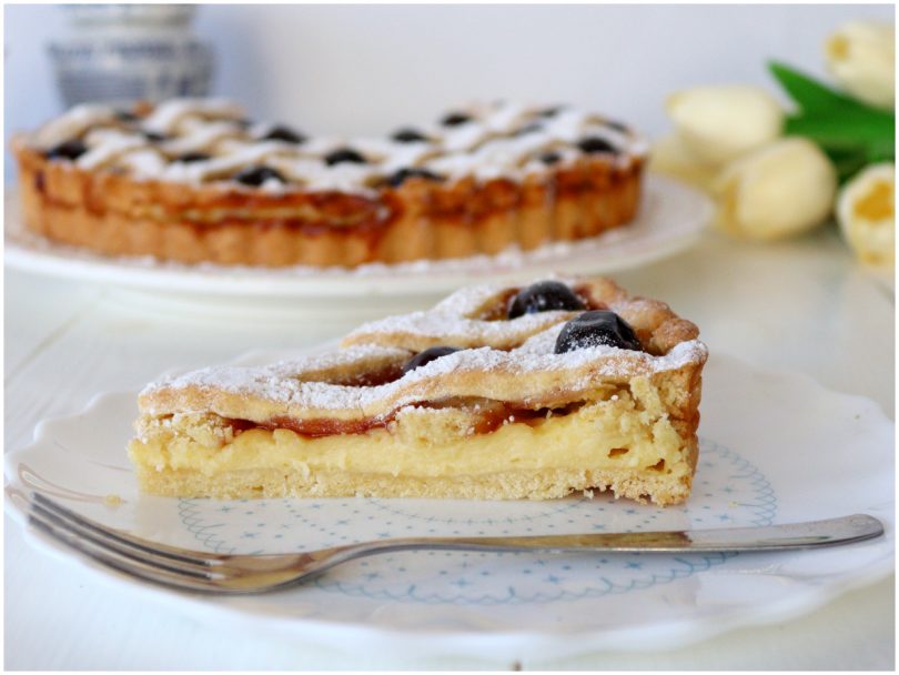 La crostata crema e amarene è un dolce che a casa mia si prepara in genere a Pasqua, una frolla friabile che incontra la crema pasticcera al limone arricchita da deliziose amarene sciroppate, che un tempo si preparavano in casa di mia nonna... una vera bontà! Quersto dolce viene anche chiamato crostata amalfitana, ed è davvero irresistibile e come non potrebbe esserlo, del resto, l’abbinamento crema e amarene è un classico della nostra pasticceria, basti pensare alla pizza con la crema o al pasticciotto leccese. Beh è tutto, vi lascio alla ricetta e se la provate, fatemi sapere :P
