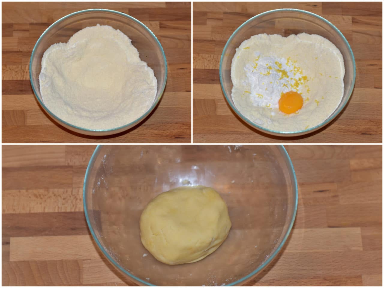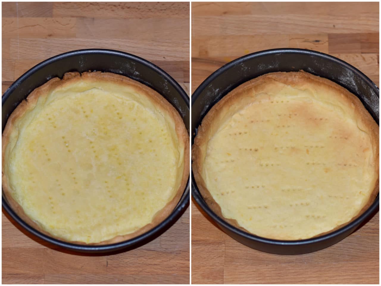 Innanzitutto preparate la pasta frolla: unite in un mixer burro freddo a pezzi e farina e frullate, poi trasferite il composto in una ciotola, unite zucchero, limone e tuorlo e lavorate velocemente fino ad ottenere un panetto omogeneo: avvolgete con pellicola per alimenti e lasciate riposare in frigo per almeno 30 minuti.
