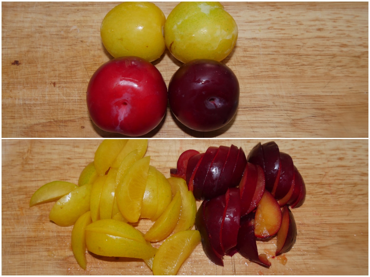 Lavate le susine e tagliatele a spicchietti, eliminando il nocciolo.