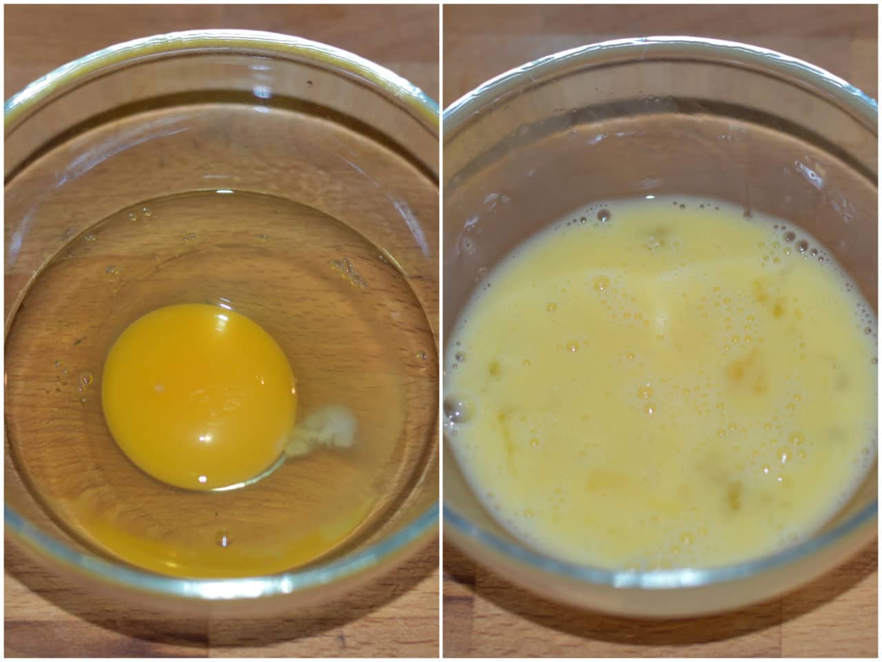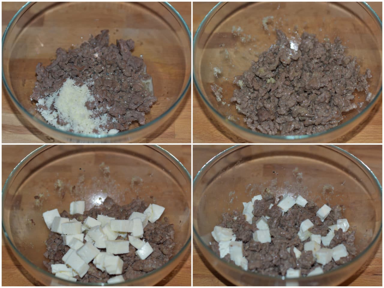 Sbattete leggermente l'uovo, quindi unitene metà (tenete il resto da parte) al macinato ormai tiepido, insieme con il parmigiano, e amalgamate.