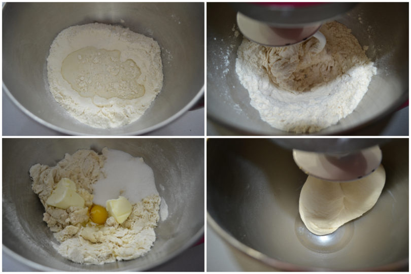 Aggiungete il burro morbido,lo zucchero, l’uovo e impastate per 10 minuti nell’impastatrice con il gancio fino a far incordare l'impasto.
