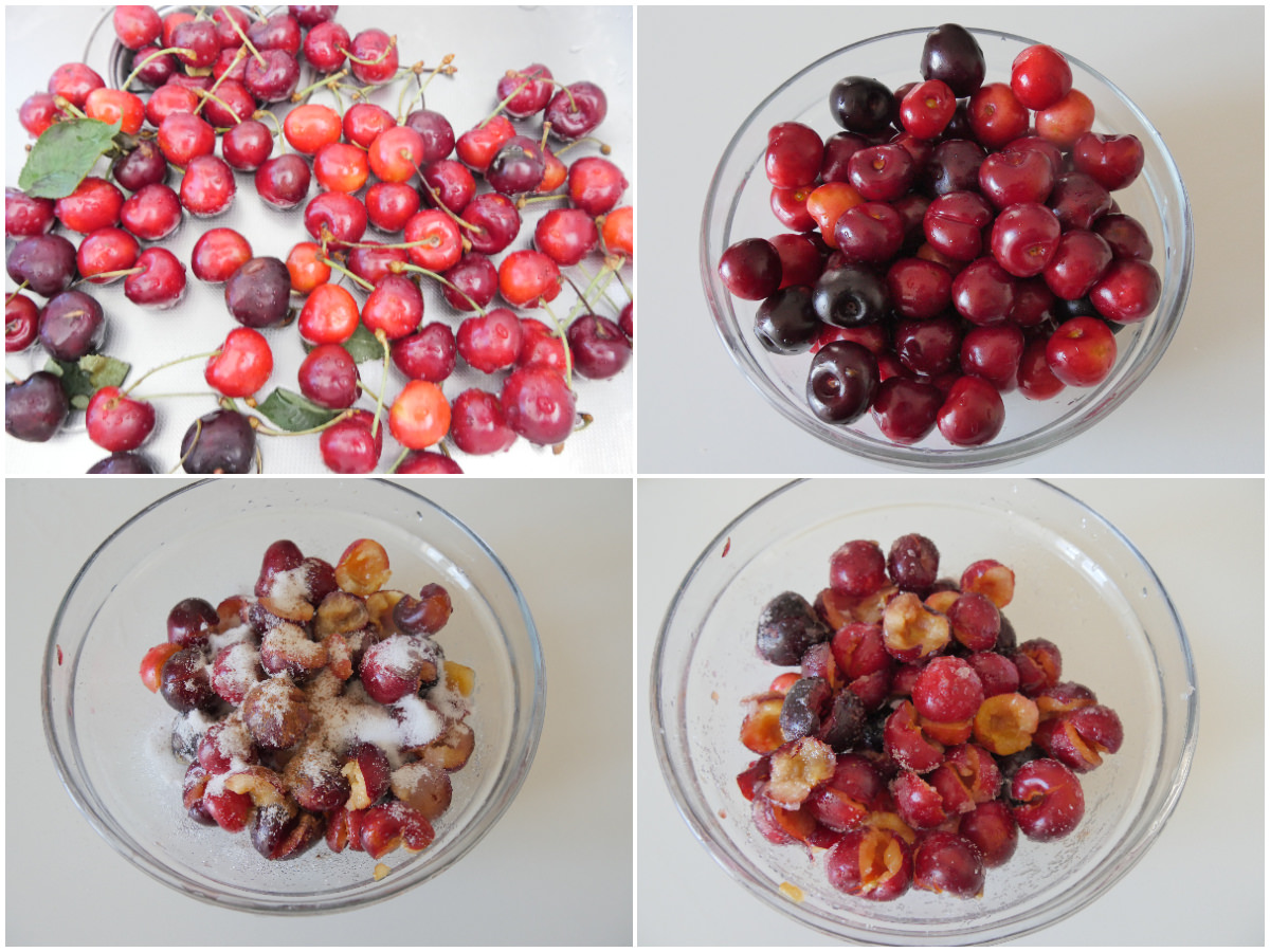 Mentre aspettate, potete dedicarvi alla pulizia delle ciliegie: lavatele, quindi eliminate picciolo e foglie e procedere a snocciolarle tutte.