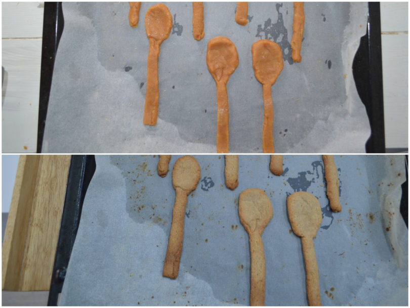 Passato il riposo, riprendete la frolla e stendetela in un foglio di circa 3 mm, quindi ritagliate i cucchiaini.