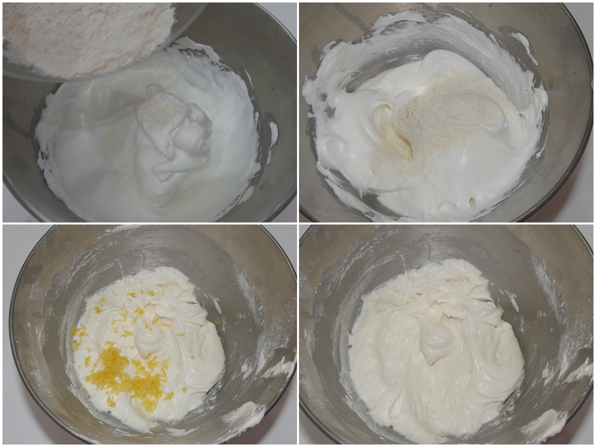 Incorporate farina e lievito setacciati, olio e buccia di limone, mescolando sempre molto delicatamente, con movimenti dal basso verso l'alto, in modo da non far smontare gli albumi.