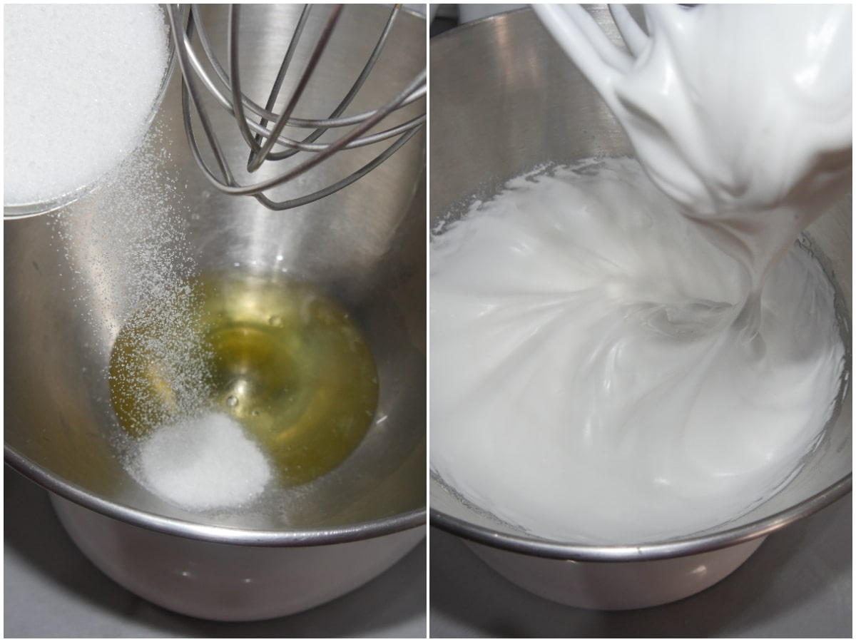 A questo punto potete preparare l'impasto per le tortine: montate gli albumi a neve fermissima insieme allo zucchero.