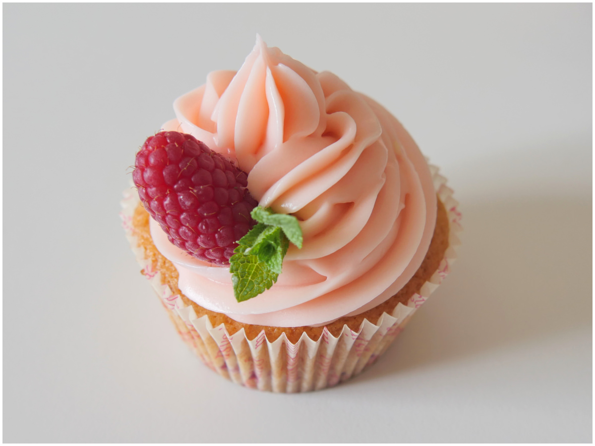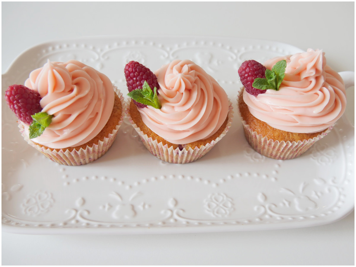I cupcakes ai lamponi sono pronti, decorateli a piacere con lamponi freschi e foglioline di menta e servite.