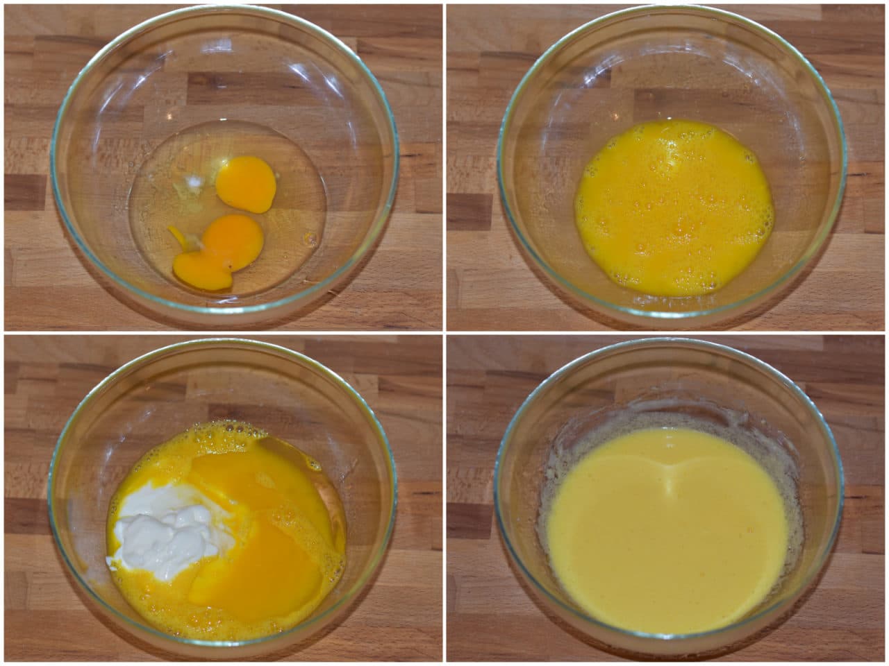 Innanzitutto sbattete le uova con il sale, poi incorporate yogurt e olio.