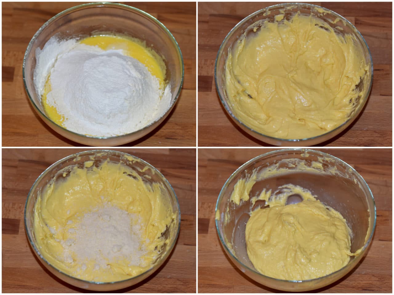 Aggiungete anche fecola, farina e lievito setacciati, poi incorporate zucchero e grana.