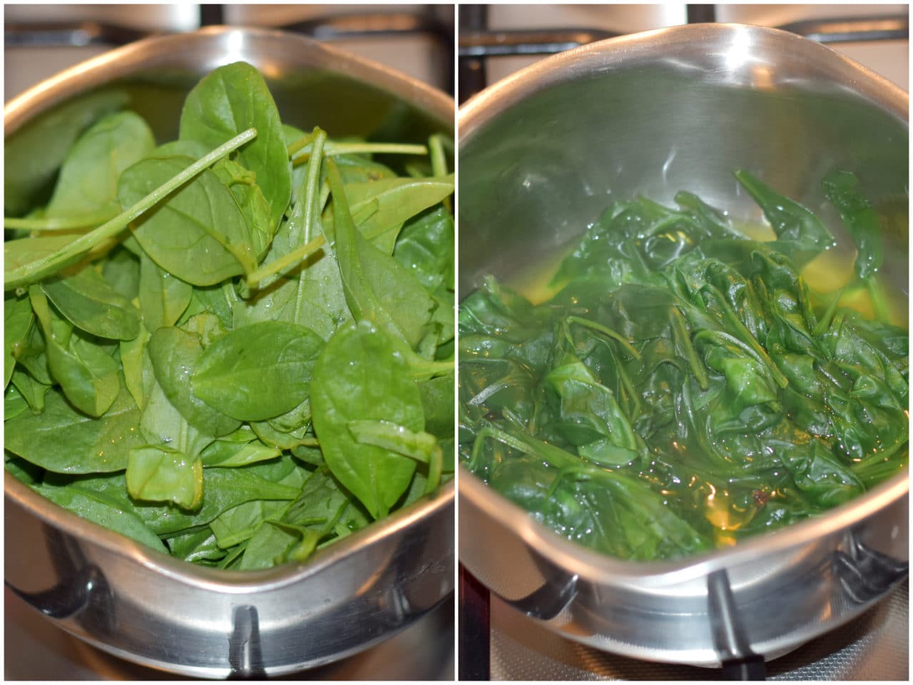 Sbollentate gli spinaci per 5 minuti, quindi scolateli e lasciateli raffreddare.