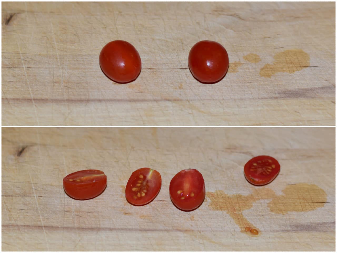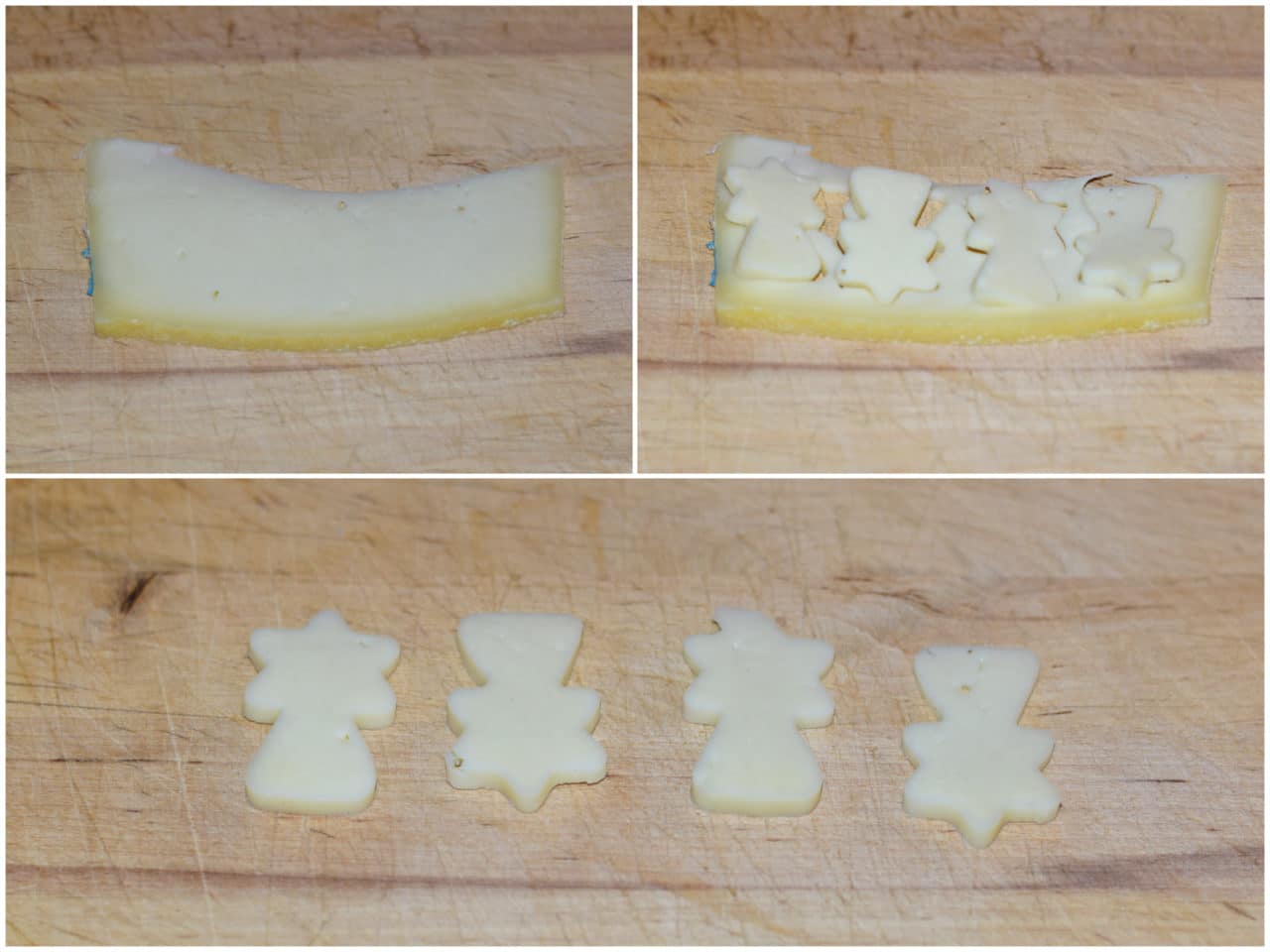 Infine ricavate le stelle comete (vanno bene anche delle semplici stelle) dalla fetta di formaggio e tagliate i pomodorini a metà.