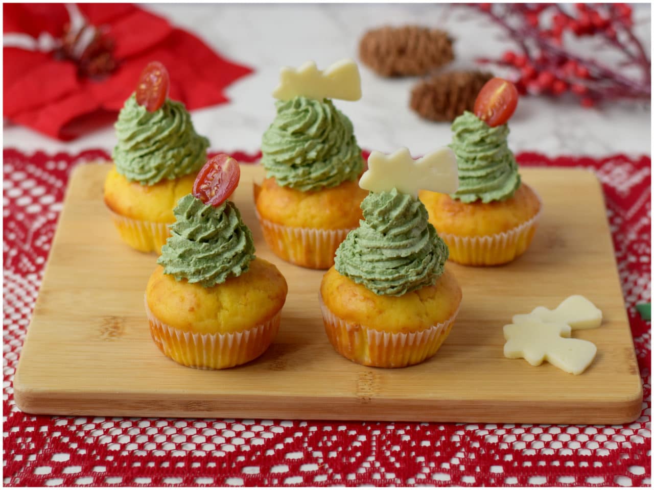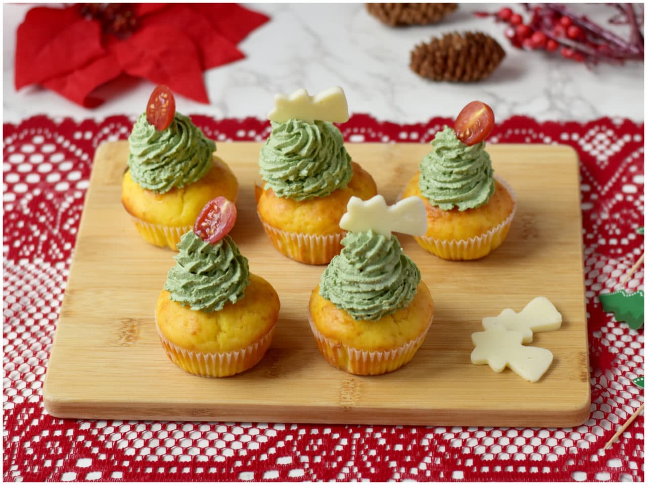 I cupcakes salati alberello sono pronti, non vi resta che aggiungere le decorazioni in cima e servirli.