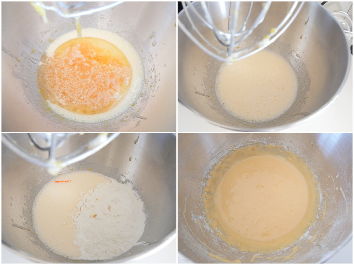 Iniziate ad amalgamare, infine incorporate anche farina e lievito setacciati, buccia di arancia grattugiata e un pizzico di sale.