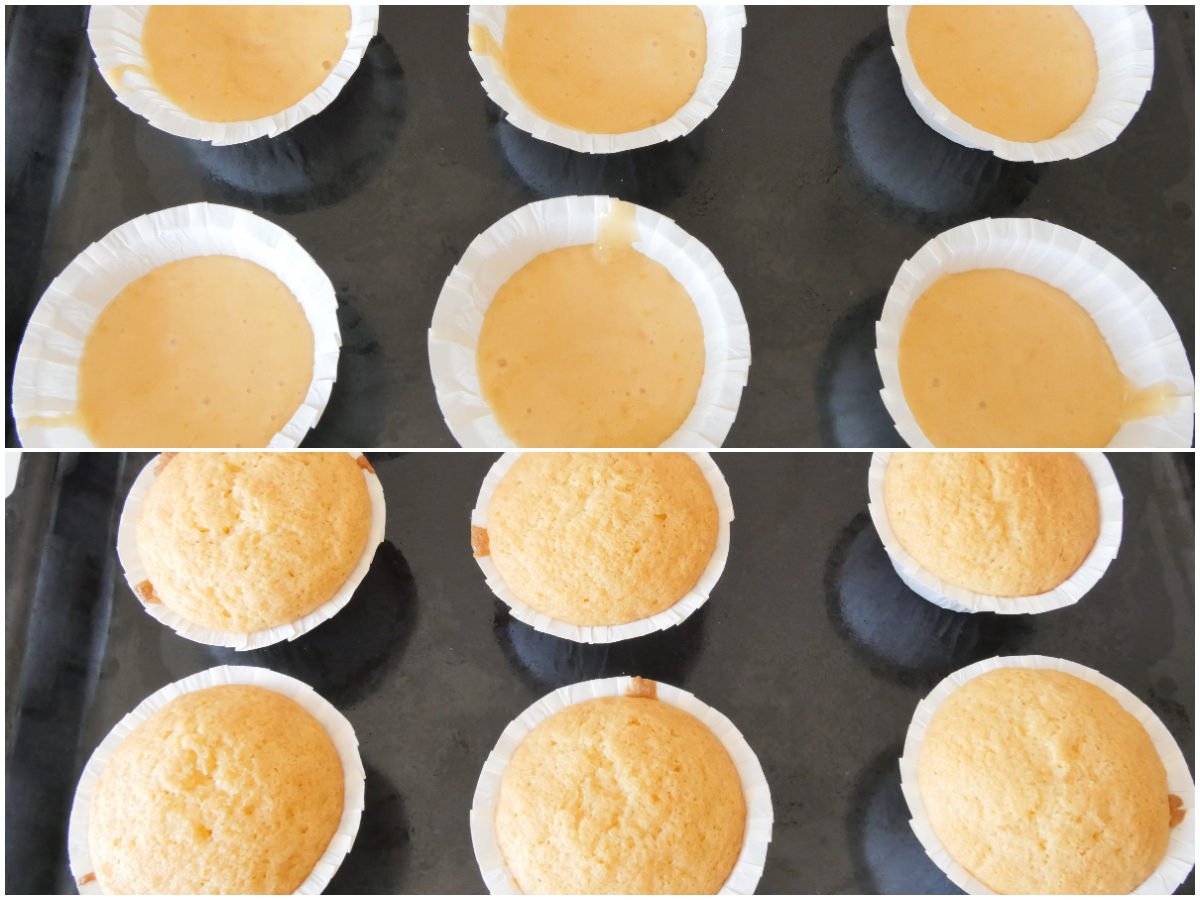 Versate il composto nei pirottini per muffin riempiendoli per 2/3 e cuocete per circa 20 minuti a 180°C: una volta cotti sfornateli e lasciateli raffreddare per bene.