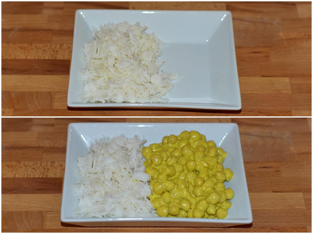 A questo punto potete impiattare, mettendo in un piatto da un lato il riso e dall'altro i ceci al curry.