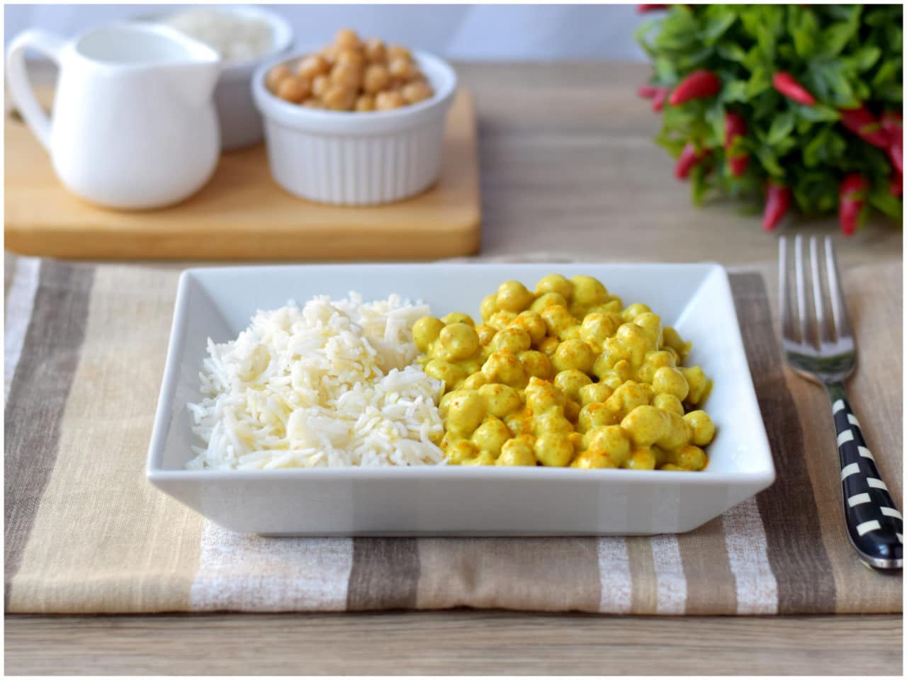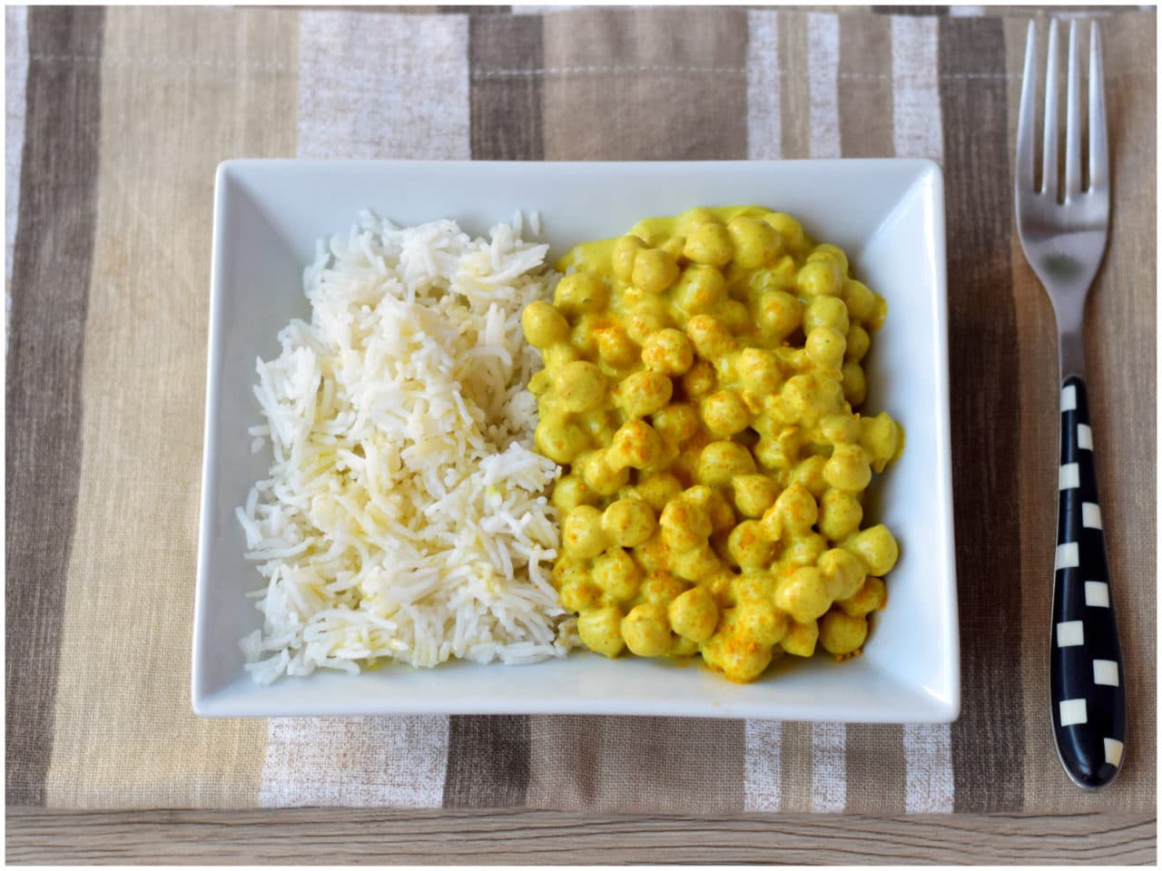 Essendo un piatto ricco e super saporito grazie alle spezie e al latte di cocco è uno di quei piatti che in versione vegan non ha davvero nulla da invidiare a quella più diffusa e conosciuta, fatta con il pollo. In molte versioni oggi troviamo anche il pomodoro, che conferisce al piatto una nota più acidula, io ho preferito cercare una ricetta che mi ricordasse proprio il pollo al curry, che non contiene pomodoro (ma voi, se preferite, potete aggiungere 1-2 cucchiai di concentrato di pomodoro). Insomma, vi lascio alla ricetta del curry di ceci e scappo in cucina ;)