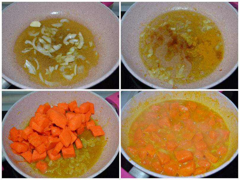 Aggiungete ora la curcuma, la paprika ed il curry e mescolate.