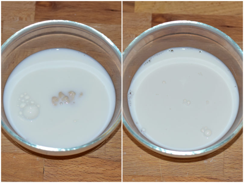 Sciogliete il lievito nel latte restante, appena intiepidito.