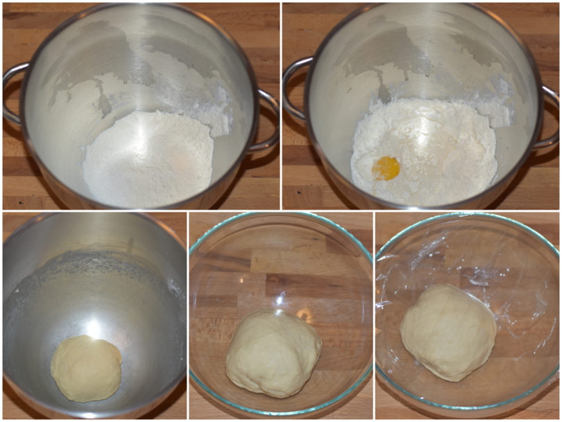Mettete farina, sale e zucchero in una ciotola, mescolate e incorporate tuorlo e latte, quindi coprite con pellicola e lasciate riposare.