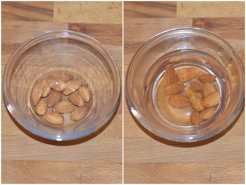 Nel frattempo mettete le mandorle in ammollo in acqua bollente e lasciatele così per 10 minuti.