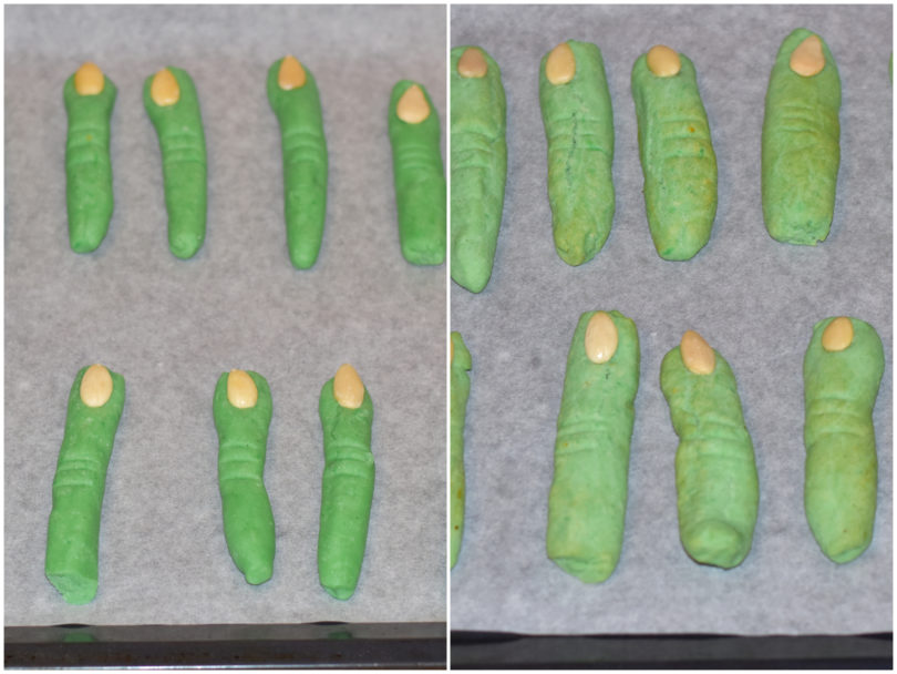 Anni fa avevo preparato le dita della strega in versione dolce, e il concetto è il medesimo: bastoncini di frolla sagomati a forma di dita mozzate, con le classiche pieghette delle nocche e una mandorla a simulare l'unghia.