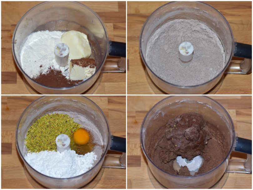 Preparate la frolla: unite in un mixer farina, cacao e burro e frullate fino ad ottenere un composto sabbioso.