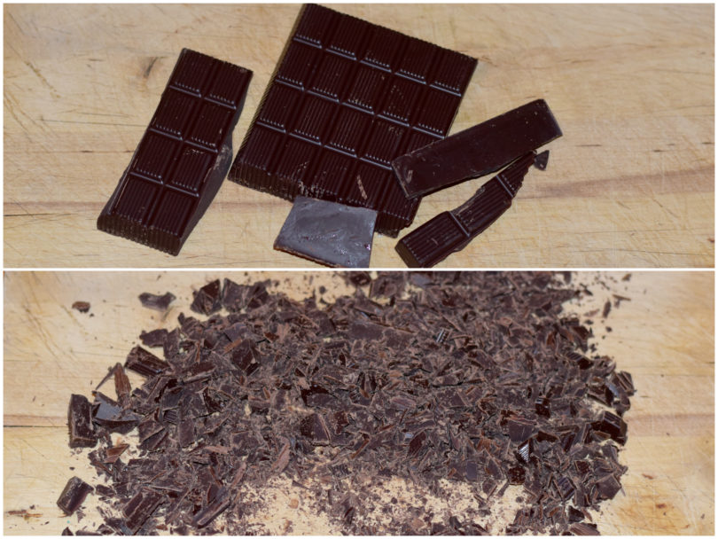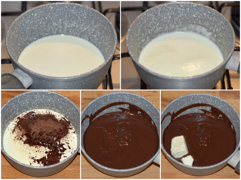 Preparate la ganache: mettete a scaldare la panna in un pentolino e nel frattempo tritate grossolanamente il cioccolato.