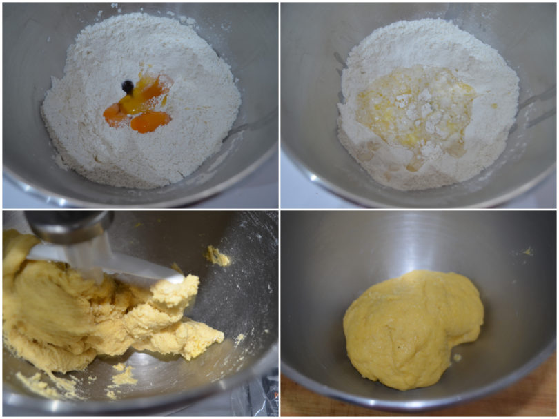Iniziate a impastare, quindi incorporate anche burro morbido e sale e lavorate fino ad ottenere un composto omogeneo.
