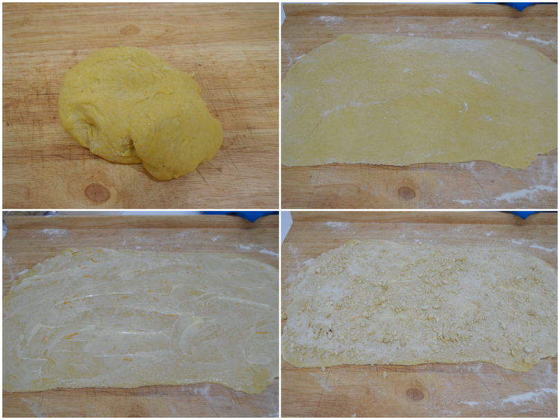 Non è molto chiara la descrizione della farcia.. Burro morbido e succo devono diventare una crema oppure no? Io nel dubbio ho fuso il burro, l’ho unito al succo e poi ho mescolato il tutto con il trito di mandarini, zucchero e farina di mandorle, è venuta una crema che ho cosparso sulla pasta. Spero vada bene 😅. La fragranza di brioche che esce dal forno mi fa ben sperare.