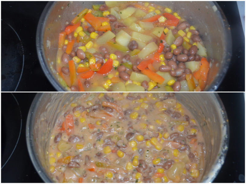 Una volta passate le 8 ore, scolate i fagioli, sciacquateli e bolliteli in acqua abbondante per almeno 40 minuti o finché non saranno teneri. (In alternativa, utilizzate dei fagioli lessi.)