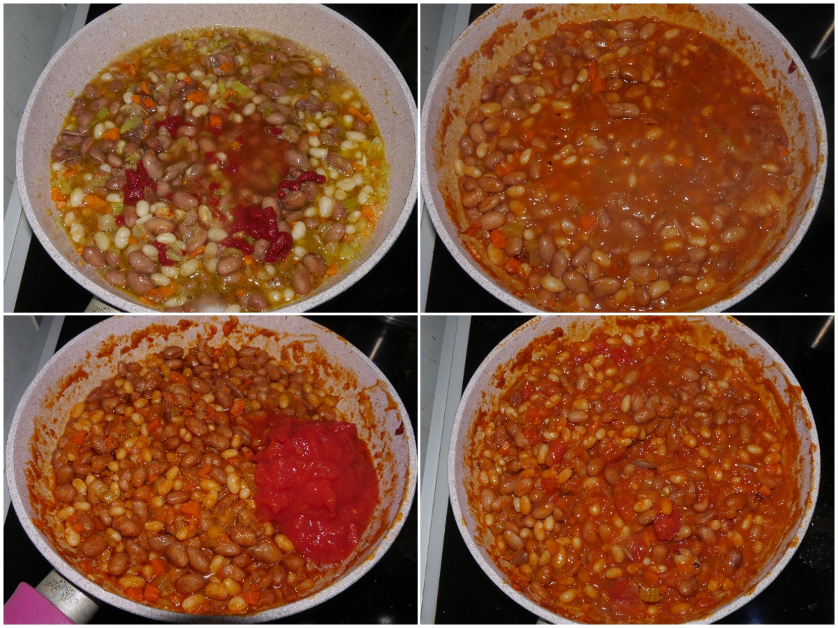 (Se dovesse essere necessario aggiungere altra acqua, fate che sia bollente; NON salate i legumi prima di fine cottura.)
